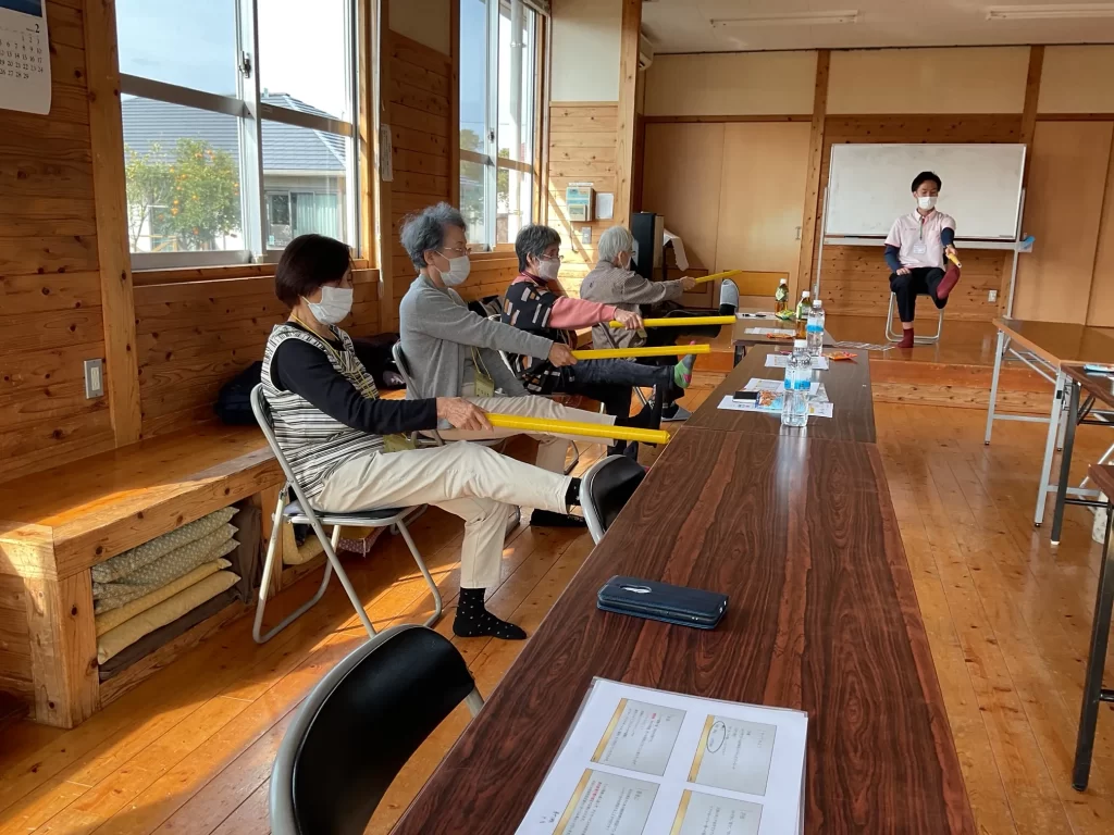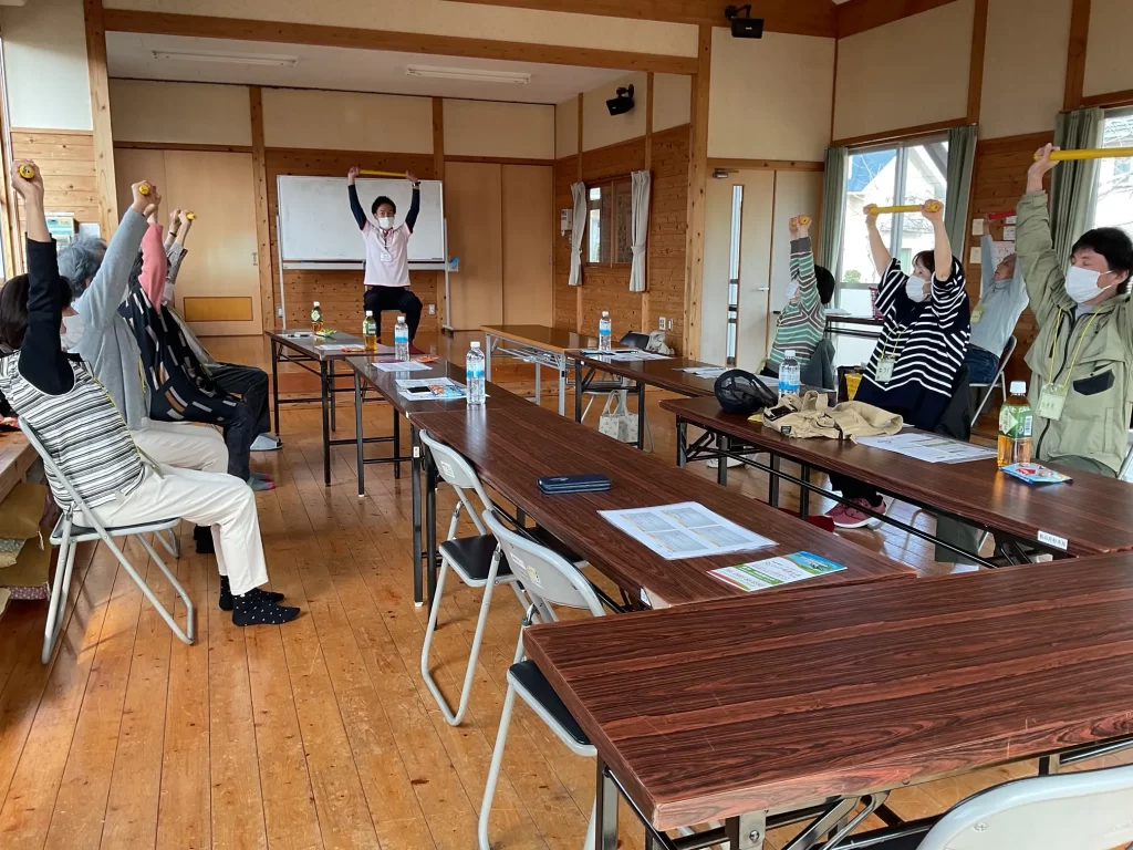 2月8日に学園木花台自治公民館にて、ミック健康の森で普段から実施している体操と、運動に関する講義や握力測定を実施しました。